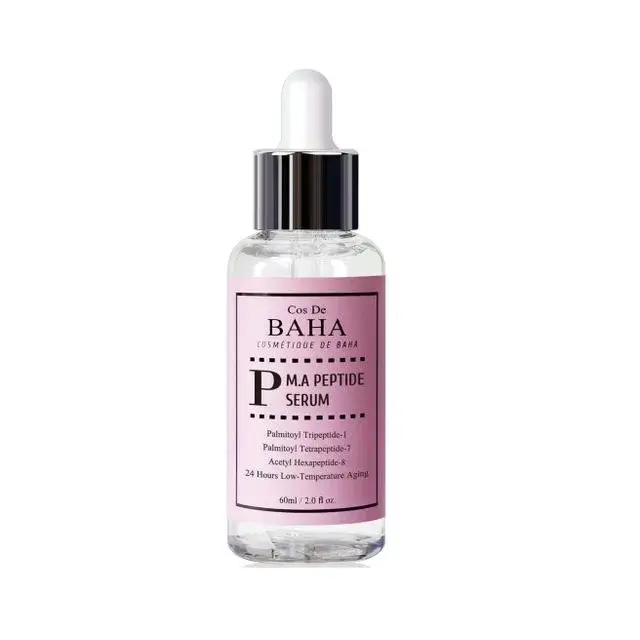 Suero rejuvenecedor con péptidos antienvejecimiento, niacinamida y adenosina, extracto de hoja de aloe que calma la piel y glicerina e hialuronato de sodio que hidratan la piel.