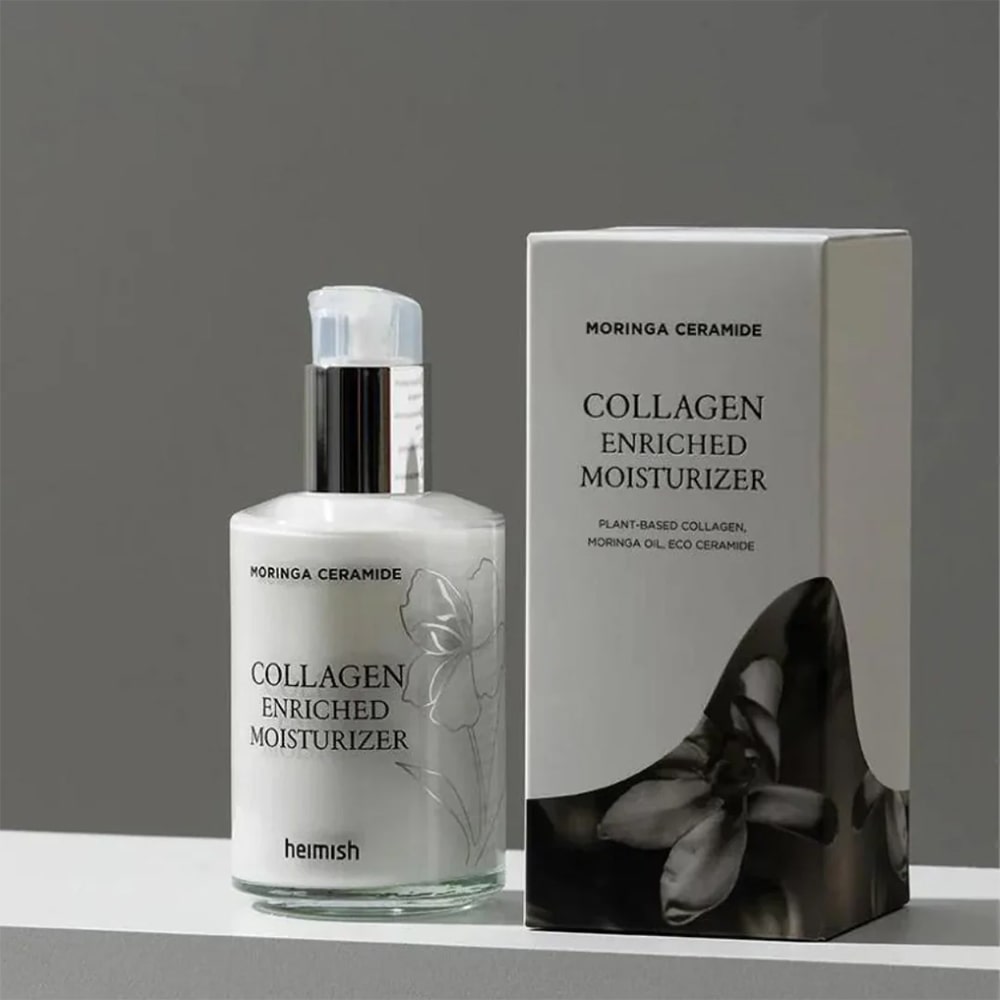 El humectante enriquecido con colágeno Heimish Moringa Ceramide crea una piel brillante, hidratada y radiante con su infusión de colágeno de origen vegetal y ceramida de Moringa.